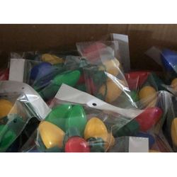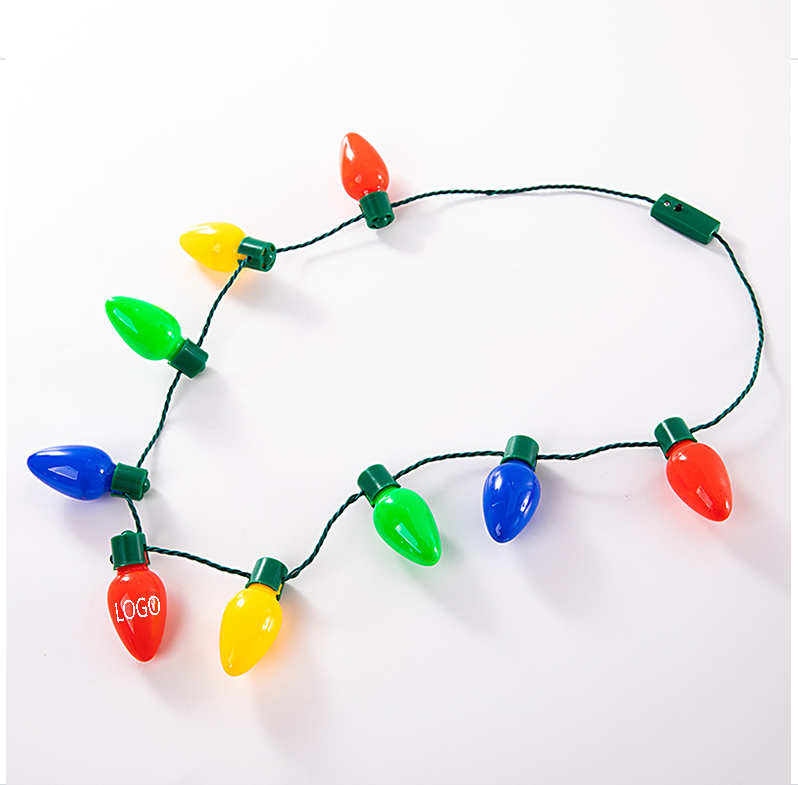 Each necklace is 37 inches. It has 9 large, multi-colored, premium-quality plastic light bulbs in red, green, yellow, and blue. The light ranges from flashing to steady on. It'll keep you visible from a distance, especially since Christmas events get crowded. Our Led necklace is not just for wearing. It has many uses as a Christmas party decoration. Hang it up anywhere you want to add a little Christmas spirit. Great for homes, restaurants, bars, and more. Batteries included and installed.